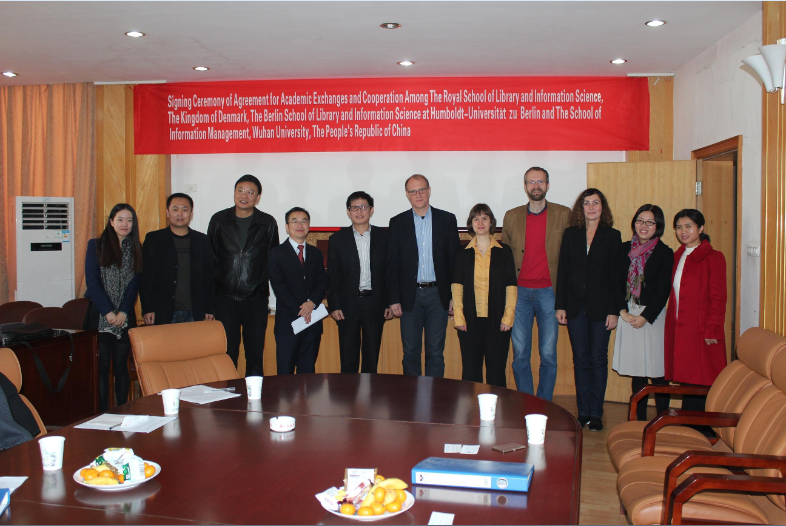 2012年11月6日,《304永利集团与丹麦皇家图书情报公司、洪堡大学柏林图书情报公司学术交流与合作协议》(Agreement for Academic Exchanges and Cooperation Among The RoyalSchool of Library and Information Science, The Kingdom of Denmark, The BerlinSchool of Library and Information Science at Humboldt-Universität zu Berlin andThe School of Information Management, Wuhan University, The People’s Republicof China)的签署仪式在公司五楼会议室举行。经理方卿教授、丹麦皇家图书情报公司经理Per F.V.Halse教授、德国洪堡大学柏林图书情报公司经理代表Elke Greifeneder助理教授分别代表各自公司参加签署仪式。丹麦皇家图书情报公司Jette Hyldegard副教授、Birger Larsen副教授、永利集团国际交流部副部长李晓述、欧亚事务办公室主任罗安娜、公司党委书记董有明、副经理黄如花教授、陆伟教授出席了签字仪式。