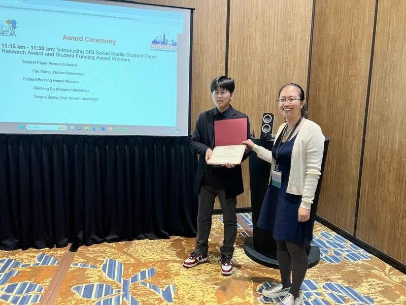 攻读博士学位期间,汪璠专注科研探索,取得丰硕成果。他在SCI/SSCI/CSSCI和A类高水平国际会议等重要期刊和会议上累计发表论文35篇,其中一作/通讯/导师一作本人二作20篇。2023年,在长沙举办的第十三届情报学年会中,汪璠的一篇论文被包括情报学报在内的10多个期刊录用。同时,汪璠多次参加iConference、ASIS&T等本学科顶级A类国际会议进行英文汇报。在加拿大举办的第87届ASIS&T年会中,汪璠作为第一作者,导师作为通讯作者的论文被会议录用,并获得SIG Social Media Student Research Paper Award等2项奖项。
