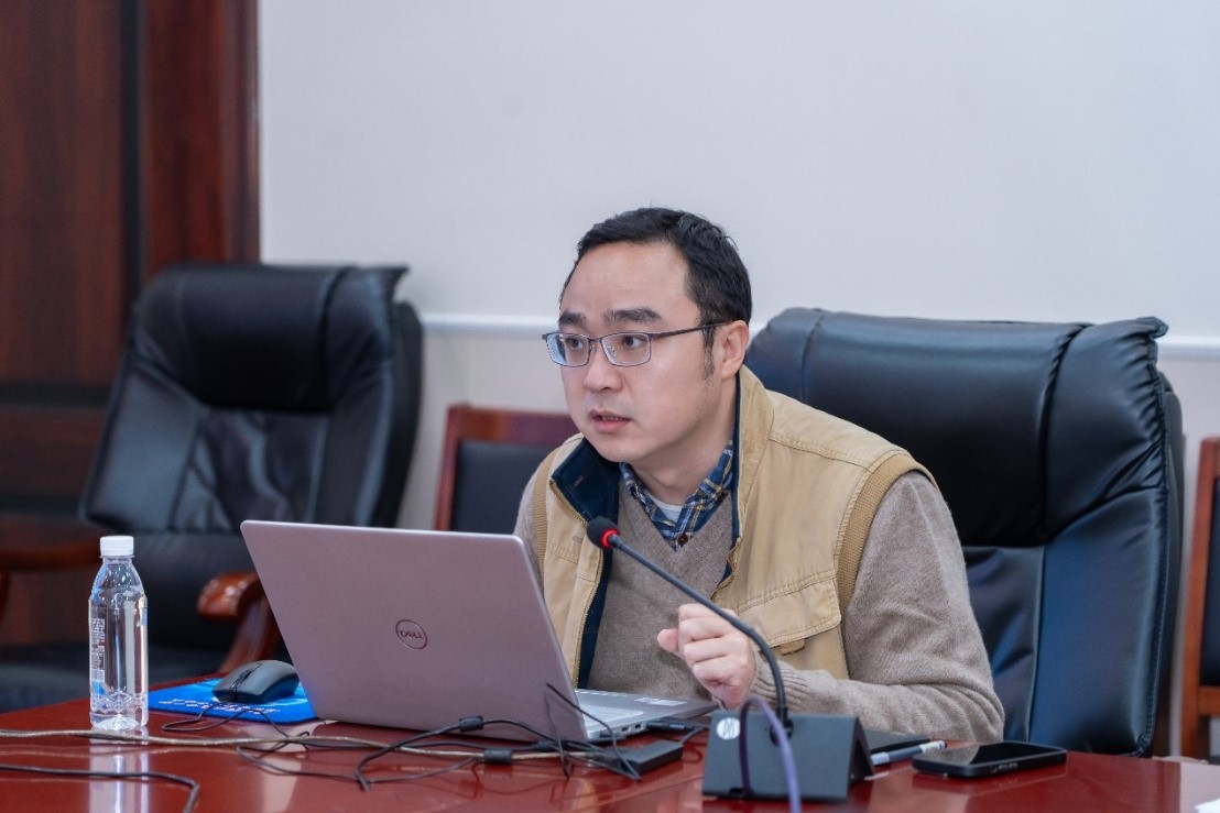 王卓昊作为项目承担单位代表发言。他指出,中信所高度重视本次基地重大项目的研究工作,项目执行期间多次组织团队开展专题讨论,全面跟进项目的实施进展和组织联动。在项目研究过程中,始终与各子课题承担单位和专家团队保持密切学术交流与合作。目前,项目研究工作正稳步推进中。希望各位专家提供宝贵建议,项目组将进一步改进和完善研究内容,力争交出一份合格的答卷。此外,他还提到中信所利用情报理论方法完成了许多新工作,在多个领域战略研究工作中取得创新成果。未来,项目组将面向2030年和2035年的发展规划,对标美国,对齐趋势,形成一套面向大国博弈的情报研究方法。