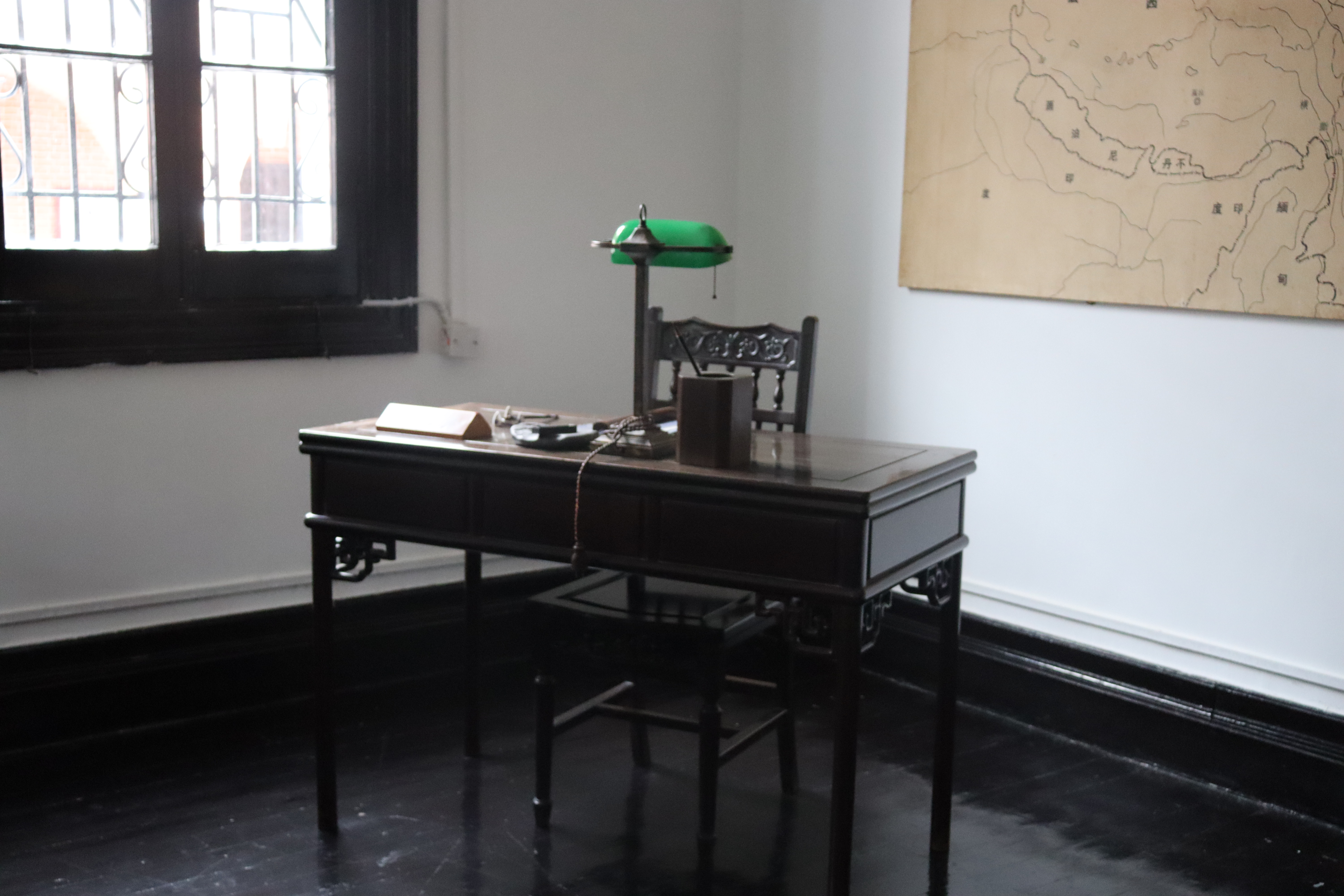 参观临近尾声,同学们进入鄂军都督府复原旧址,依次参观了谋略会议室、军令部、外交部等办公场地。红木桌椅,青灯为伴,尽显历史厚重的气息,生动再现了沉默在历史长河里的风容风貌。