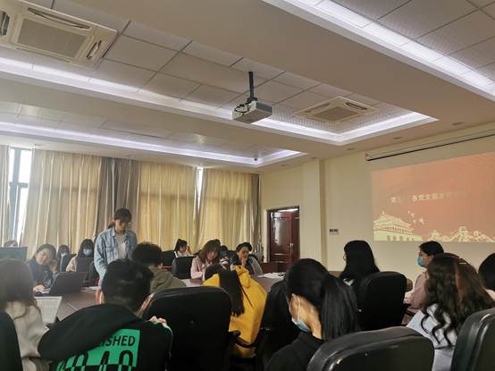 各支部与会成员就研习内容进行了热烈讨论。图书馆学本科生支部贾宇婷分享了关于如何学习党史的思考,提出制作微信推文、动漫产品和举办故事会等多种形式。档案学本科生支部田越结合习近平总书记在清华大学考察时的重要讲话,提到武大学子要牢记总书记嘱托,加强党史学习,立志成为担当民族复兴大任的时代青年。档案学本科生支部王雪结合自身在学党史过程中不断完善自我,努力克服缺点的经历,表达了对英雄前辈的敬意。电子商务本科生支部周嘉乐从正反两方面论述了学历史、学党史的重要性,谈到当代青年要善于把学习党史的心得体会转化为开展实践的精神力量。