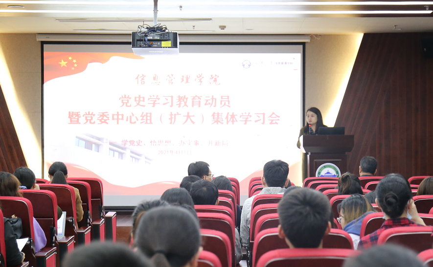 为确保党史学习教育取得扎实成效,付兴荣提出三点要求:一是要找准定位,深刻认识开展党史学习教育的重大意义。全体信管人要把学习教育成效转化为奋进动力和工作实绩,以忠诚和实干推动公司事业高质量发展,为争取早日实现公司创建图书情报与数据科学学科世界一流目标而努力奋斗。二是要抓牢重点,准确把握学习教育目标要求,从学史明理、学史增信、学史崇德和学史力行四个方面下功夫,坚持学习党史与学习新中国史、改革开放史、社会主义发展史相贯通,坚持学习党史与推进公司教育事业发展相结合。三是狠抓落实,确保党史学习教育取得实效。党史学习教育要精心组织全员学习,创新方式方法,增强学习针对性、时效性,切实做到学深悟透、学通弄懂;要坚持统筹兼顾,坚持党史学习教育同推动中心工作结合起来,防止学用“两张皮”,做到切合实际、生动有效;要强化宣传浓厚氛围,充分利用各类渠道宣传学习教育的重大意义、目标任务和基本要求,在全院营造浓厚的党史学习教育氛围。