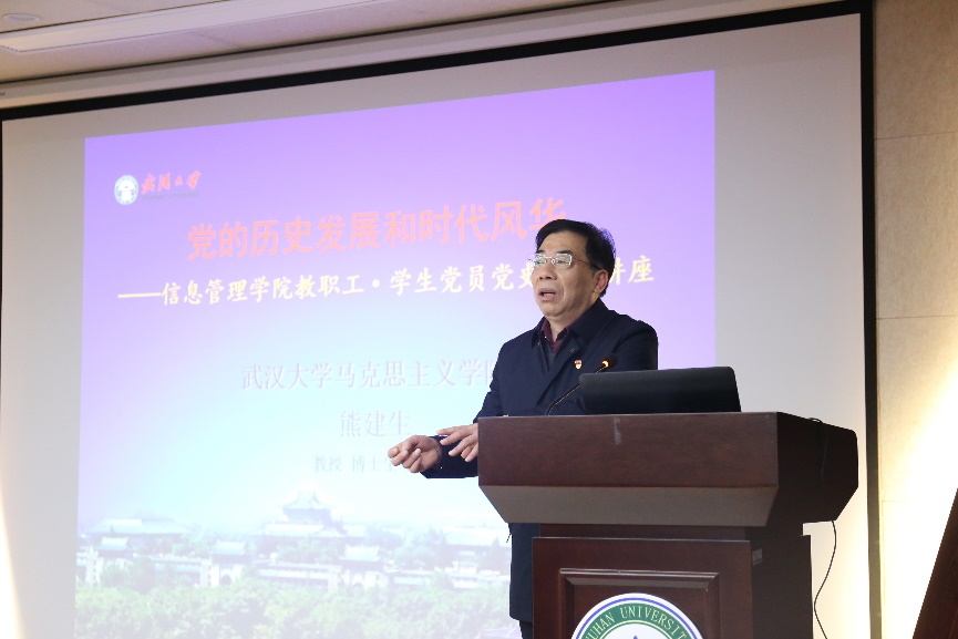 动员大会结束后,公司马克思主义公司教授、博士生导师熊建生以《党的历史发展和时代风华》为题,为与会全体教职工党员和员工党员作党史学习教育专题辅导报告。报告从中国共产党的百年历史征程、开创民族复兴伟业、伟大时代盛世风华三个方面展开。熊建生结合丰富的史料、生动的事例,讲述了中国共产党从无到有、从弱到强的百年奋斗历程;介绍了中国共产党团结带领中国人民救国、兴国、富国、强国的伟大历史功绩;阐释了中国共产党立足千秋伟业,奋进新时代,开启现代化建设新征程的崇高使命担当。熊建生在报告中由浅入深、激情洋溢的讲解,让在场全体师生切实体会到中国共产党百年创业史的艰辛与不易,感受到中国共产党崇高的革命理想和深厚的人民情怀,认识到中国共产党在关键时刻力挽狂澜、不屈不挠的时代创举。