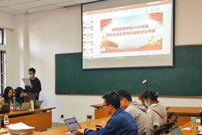 在述职过程中,党支部书记们分享了支部工作经验和方法,交流了支部工作的重点和难点问题,2020级博士研究生党支部书记权谦提出“有学习、有思考、有交流、有担当、有归属”的“五有”支部建设理念,以开展主题教育与特色党日活动为契机,加强支部成员之间的交流,有效增强了支部的凝聚力、战斗力;2019级博士研究生党支部书记章萌将研究生党建与学习科研相结合,面向博士研究生的工作重点与实际情况,开展“以党建促科研”特色主题党日活动,在学习科研第一线发挥党员先锋模范作用;2019级图书情报硕士研究生党支部2020年开展支部活动20余次,精心组织支部学习教育与主题党日,起到了良好的带动和示范效果。