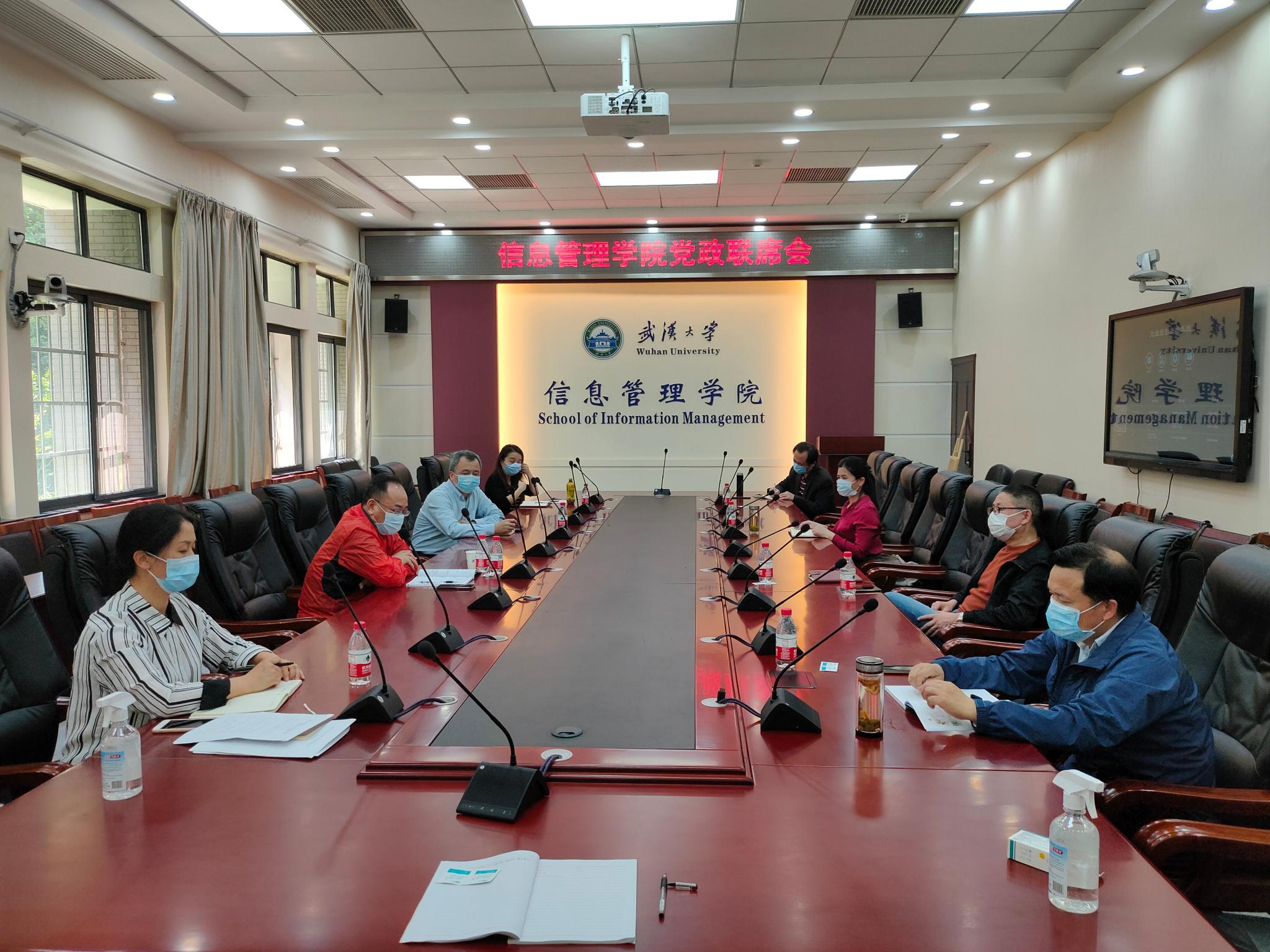 党委副书记江尧林汇报了研究生疫情防控、党建和思想政治教育、科研、就业,公司的宣传和工会等工作,同时提出力争将疫情对就业工作产生的影响减少到最小化;党委副书记代茜汇报了党员发展和培训、本科生日常管理等工作情况,落实巡察整改工作完成情况,本科生招生宣传工作情况,对应对毕业生就业的严峻形式提出了思考和建议;副经理黄如花汇报了JCDL2020、2020 ASIS&T、第十五届海峡两岸图书资讯学学术研讨会、图书情报教育研讨会等学术会议的筹备工作进展情况,近期公司各类科研项目的申报组织和进展跟踪工作情况,并对如何解决科研工作中的意识形态问题提出了具体举措;副经理陆伟汇报了研究生毕业答辩工作安排,汇报了研究生招生复试实施细则,针对面试过程中可能存在的问题提出了解决办法;副经理吴江汇报了本科生网络授课、专业分流、期末考试准备、毕业生论文答辩筹备等各项工作,此外还汇报了国际专业认证和博士后流动站工作;副经理王华汇报了公司日常环境消杀、安全检查、财务纳税申报、非编人员续聘、保密实训平台运行方式等工作。